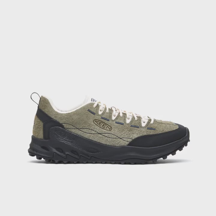 The KEEN Jasper Zionic in Olive/Birch merges outdoor heritage with contemporary comfort. Designed with a nod to retro climbing shoes, this pair offers a rugged look and everyday functionality for urban exploration or trail adventures.