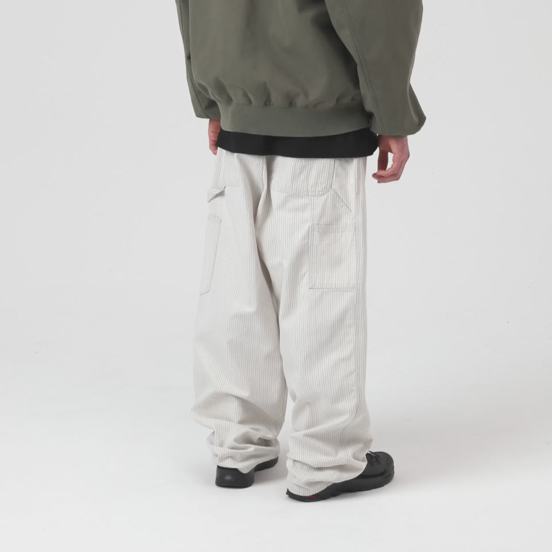 Carhartt WIP Mercer Single Knee Pant in Bleached Mercer Stripe Graphite / Wax is a durable pair of workwear-inspired trousers combining classic utility design with modern everyday wearability. Made from sturdy cotton fabric with a striped pattern, these pants reflect Carhartt WIP’s heritage rooted in workwear.